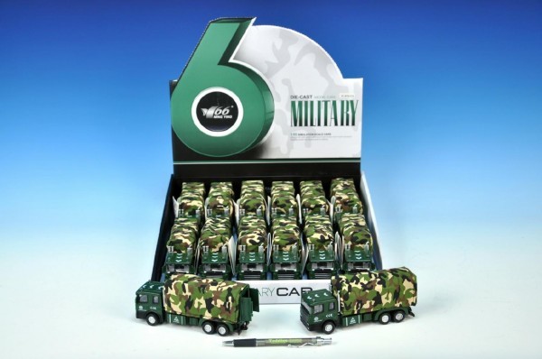 Auto nákladní vojenské 15cm kov zpětný chod na baterie se světlem a zvukem 12ks v boxu