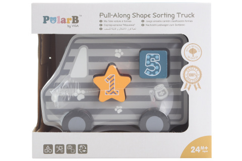 Dřevěná tahačka a vkládačka ve tvaru nákladního auta. Rozměry cca 18 x 12 x 6,5 cm. Rozměry balení cca 19 x 16,5 x 13,5 cm. Věk 24m+ prečítať celé