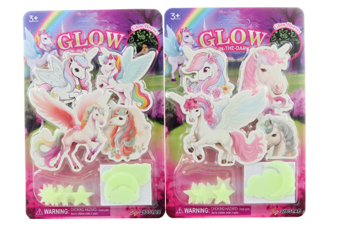 Nalepovací dekorace s motivem jednorožců. Balení obsahuje 4 jednorožce, hvězdičky, mrak a měsíc. Ve tmě všechny soušásti svítí. Baleno na kartě. Rozměry balení 16x25x1,5 cm. Věk 3+ prečítať celé