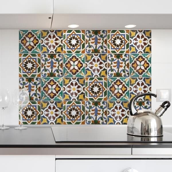 Crearreda Samolepicí kuchyňský panel KP Green Tiles 67210 Ornamentální dlaždičky