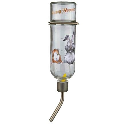 Sklenená napájačka Honey & Hopper s kovovým náustkom pre činčily a králiky 500 ml