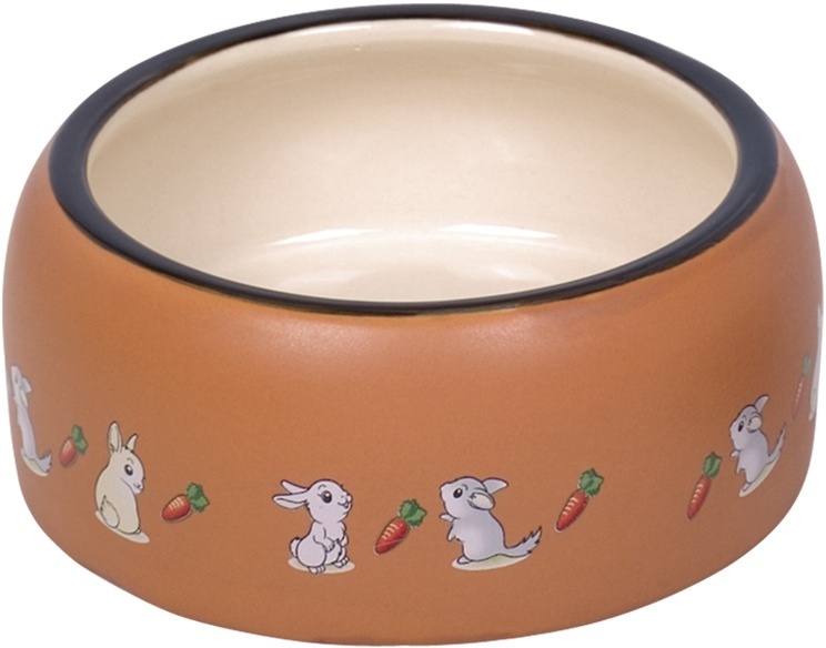 Kulatá keramická miska pro hlodavce od Nobby bude zaručeně vkusným a praktickým doplňkem pelíšku každého domácího mazlíčka. Miska je uvnitř bílá, z vnější strany hnědá a je zdobená potiskem kreslených králíčků. Nobby RABBIT krmná miska velikost: 14,5 x 5,5 cm objem 0,5 l barva bílo-hnědá potisk motivem králíčků těžká