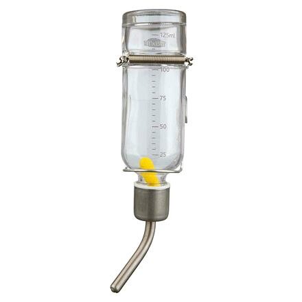 Sklenená napájačka s kovovým náustkom pre pieskomily a škrečky 125 ml