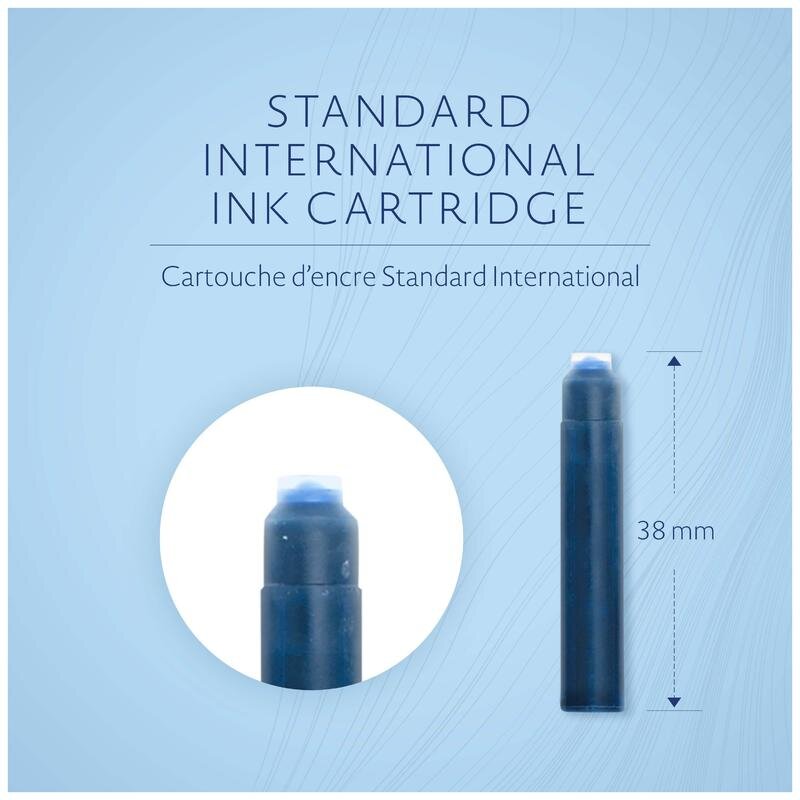 Dzięki szerokiej palecie dziewięciu wyjątkowych kolorów atramentu, wieczne pióra Waterman pozwalają na ponowne odkrycie autentycznej przyjmności pisania i tworzenia swojego własnego, niepowtarzalnego stylu. Małe i duże naboje lub używanie tradycyjnego atramentu w butelce zwiększają radośc tworzenia dzięki szlachetnej elegancji i autentyczności płynnego atramentu. Kolor: niebieski.