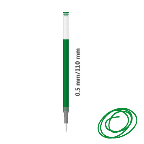 Gelová náplň do péra, zelená barva, délka 110 mm, průměr kuličky 0,5 mm. prečítať celé