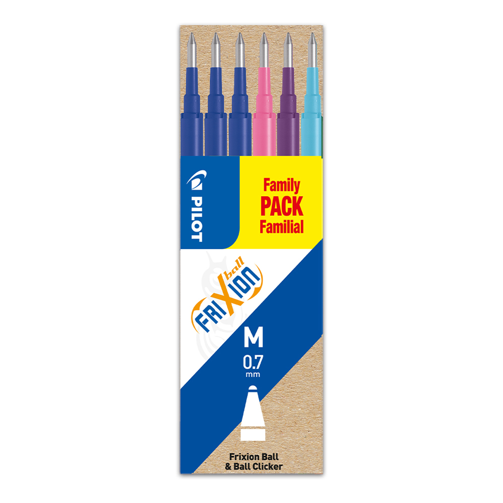 Náplň Pilot Frixion - 3x modrá, 1x čierna, 1x ružová a 1x svetlo modrá. Šírka stopy: 0,7 mm. Balenie obsahuje 6 ks. prečítať celé