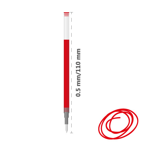 Gelová náplň do péra, červená barva, délka 110 mm, průměr kuličky 0,5 mm. prečítať celé