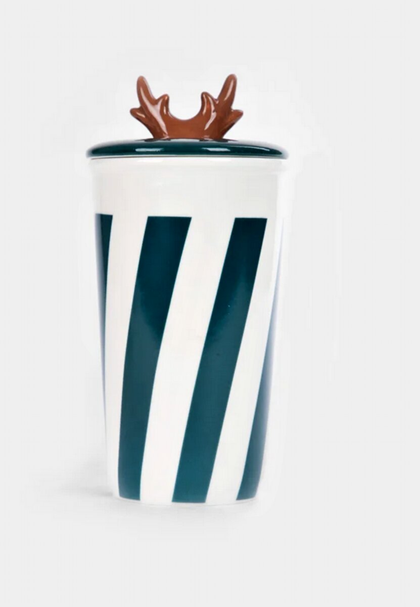 Hrnek | HOMBER | zelený pruhovaný s víčkem | 0,45 l | 718755