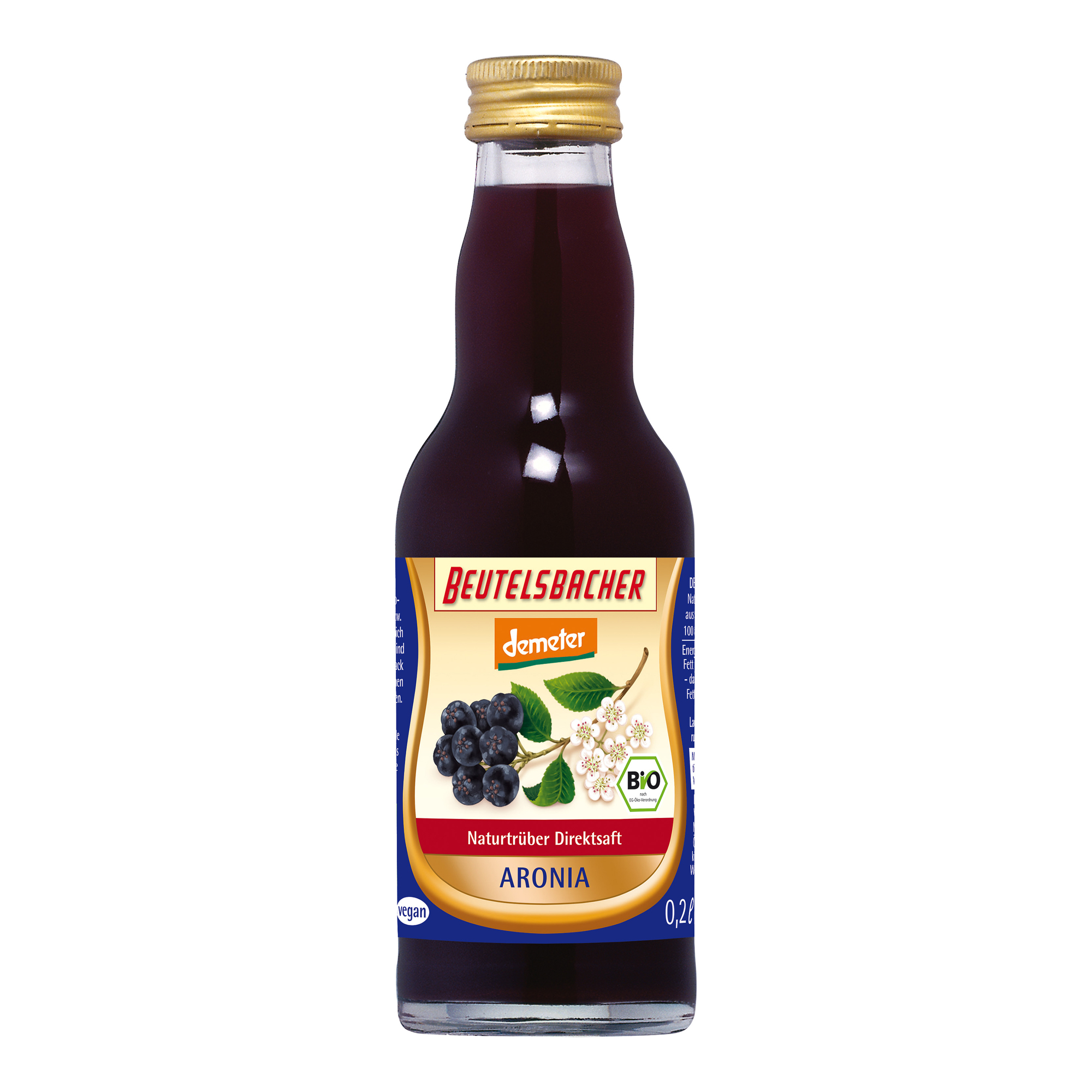 Lisovaná šťáva z arónie. Podíl ovocné složky 100 %. produkt kontrolovaného biodynamického zemědělstvíKalorická hodnota/energie (na 100ml):252kJ/59kcal. Tuky: 0 g. z toho nasycené mastné kyseliny: 0 g. Sacharidy: 13 g. z toho cukry: 9 g. Bílkoviny: 0 g. Sůl: 0,01 g. Vlákniny: 0 gSkladování: Po...