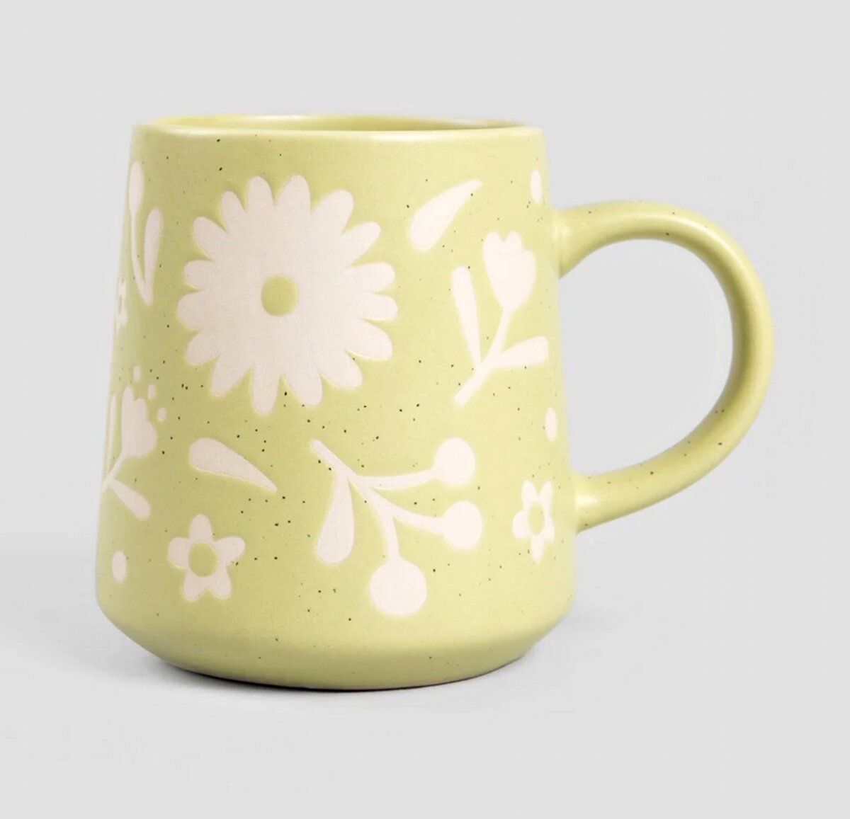 Hrnek | BONITO | zelený s bílými květy | 0,45 l | 728389