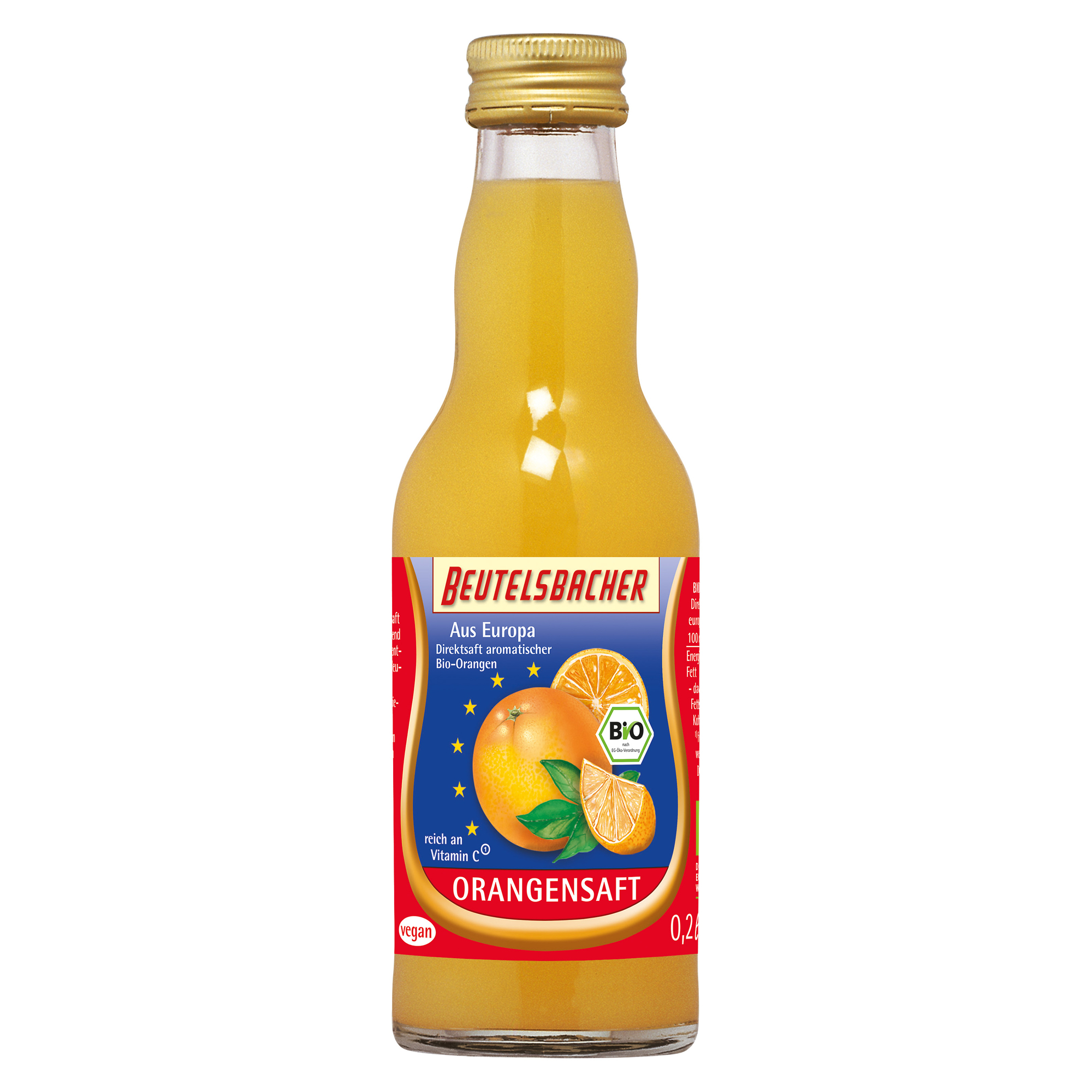 Lisovaná šťáva z pomerančů. Podíl ovocné složky 100 %. produkt kontrolovaného ekologického zemědělstvíKalorická hodnota/energie (na 100ml):193kJ/46kcal. Tuky: 0,2 g. z toho nasycené mastné kyseliny: 0,04 g. Sacharidy: 9,4 g. z toho cukry: 9,4 g. Bílkoviny: 0,7 g. Sůl: 0 g. Vlákniny: 0...