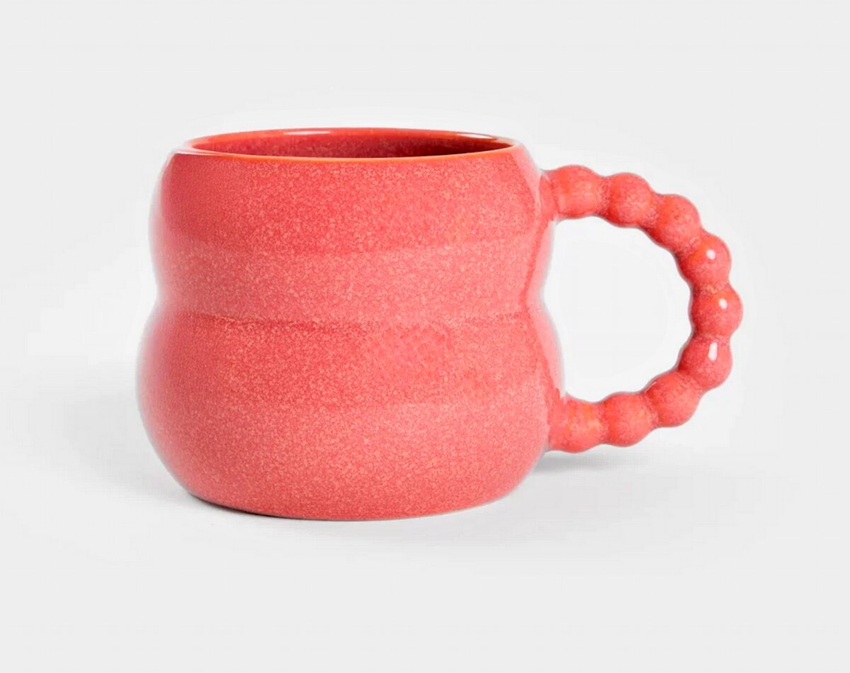 Originální, zaoblený tvar - Ozdobné, zvlněné ucho - Vyrobeno z kameniny s lesklým povrchem - Objem 300 ml - Korálový hrnek 300 mlHrnek má originální tvar, který v sobě spojuje modernost a umělecký charakter. Jeho zaoblený, jemně nepravidelný tvar zajišťuje, že skvěle padne do ruky, a ozdobné,...