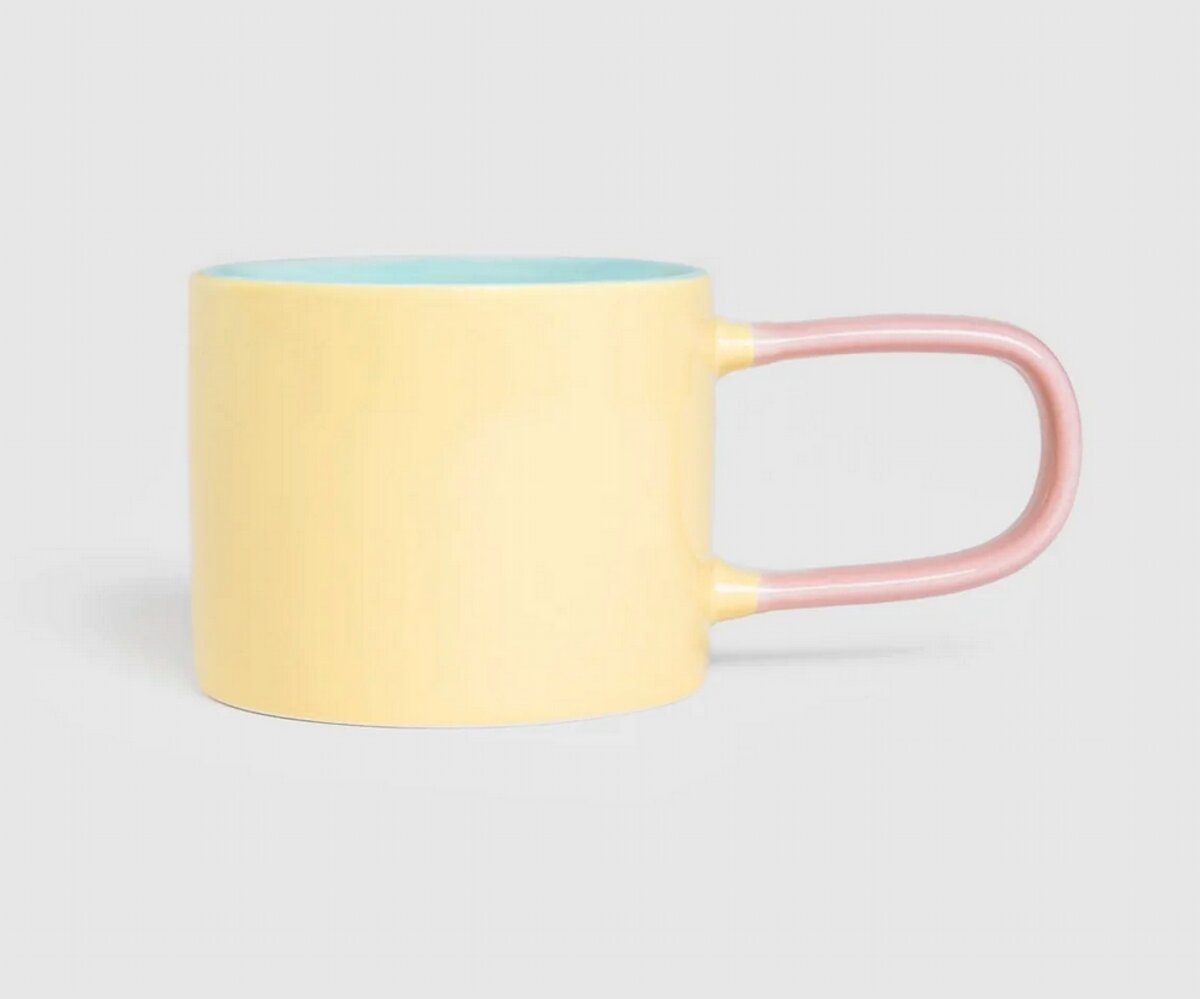Objem 300 ml - Pastelové barvy - Moderní design - Jarní akcent v jídelně - Žlutý hrnek s dlouhým uchem 300 mlHrnek v jasných pastelových barvách se vyznačuje minimalistickým designem a originálním tvarem. Bude krásně vypadat na jídelním stole nebo na kuchyňské lince.Barevný porcelánový hrnek o...