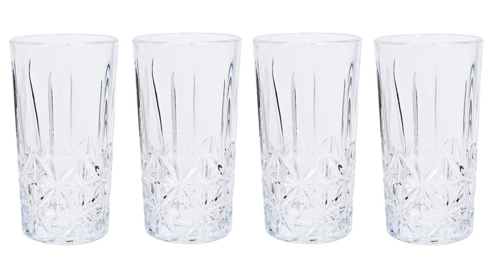 Sklenice vysoká s plastickým dekorem. Sada 4 ks. Materiál: sklo. Rozměry: objem 0,26 l, pr. 7 cm, v. 13 cm. Vhodná do myčky, nevhodná do MVT. prečítať celé