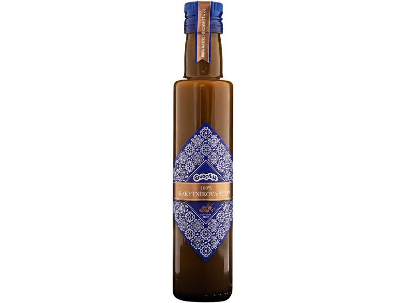 Rakytníková šťáva neobsahuje nic než jen rakytník. Ručně sbírané plody jsou za studena lisované a šetrně pasterované. Šťáva se dá míchat s vodou nebo pít samotná. Doporučenou denní dávku vitamínu C splníte na pár loků, stačí 40 ml šťávy, ideálně rozmíchat ve 200 ml vody. Kvůli zbytkům oleje z lisování je sedimentace dužniny vzhůru přirozeným jevem.
