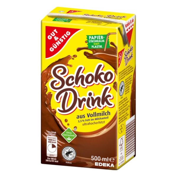 GG Čoko drink z plnotučného mléka 3,5% - 500mlLahodný mléčný nápoj s kakaovou příchutí. Praktická krabička s brčkem - ideální na cesty. Kakao je z udržitelného pěstování - Certifikace Rainforest Alliance. prečítať celé