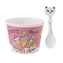 Pohár se lžičkou na servírování zmrzliny, dřeně, ovocných a tvarohových přesnídávek... Lžičku lze odložit na okraj pohárku. Sada 4+4 ks, mix dekorů. Materiál: plast PP, plast SAN (lžička). Rozměry: o. 0,3 l, pr. 9 cm, v. 7 cm. Použití při teplotách: miska od -25 °C do 95 °C, lžička do 85 °C. Není vhodné do myčky, je vhodné do MVT. Pro děti od 3 let.