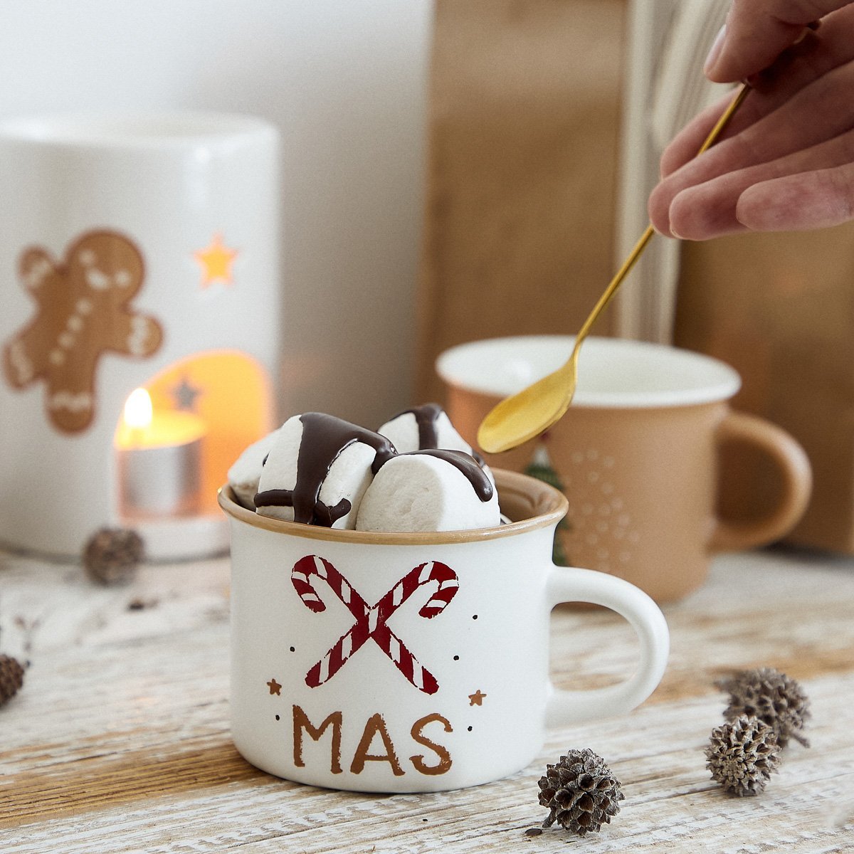 Vánoční hrnek | FLOCON | bílý s tyčinkami | 0,16 l | 945797 Homla