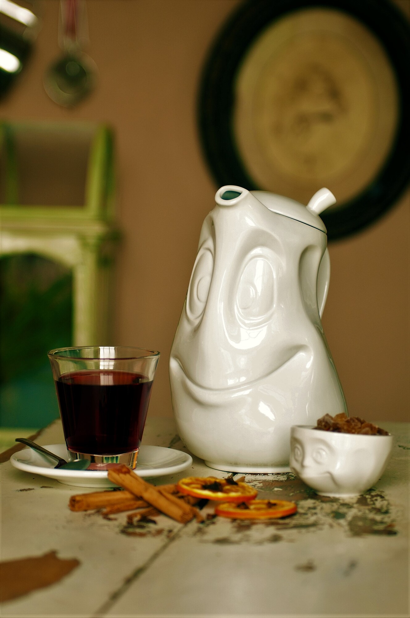 Vtipná konvička Dobrá nálada na čaj, kávu, kakao, snídani 1200 ml, 58products S porcelánem od německých designérů FiftyEight Products dostanou vaše snídaně, svačiny i párty s přáteli nádech hravosti a vtipu. Výrazy, které designéři miskám a hrníčkům vtiskli, jsou tak věrné, až je to k neuvěření...