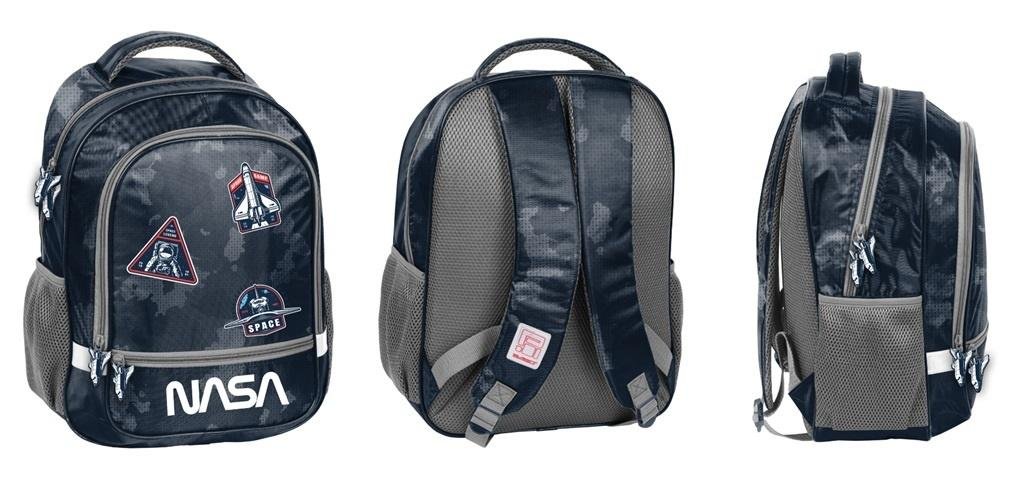 Plecak dwukomorowy szkolny, jedna płaska mała kieszeń na froncie, dwie boczne kieszenie z siatki (mieszczą małą butelkę, bidon lub termos). Elementy odblaskowe, usztywnione plecy pokryte siatką. Wygodny uchwyt do przenoszenia. Wygodne pullery ułatwiające odpinanie zamków.