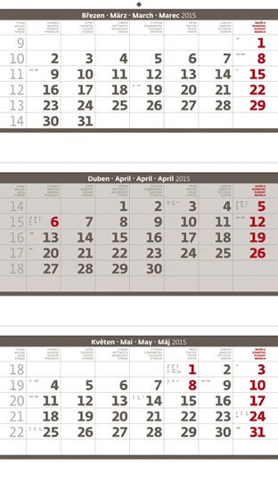 Kalendář nástěnný 2015 - Tříměsíční skládaný šedý