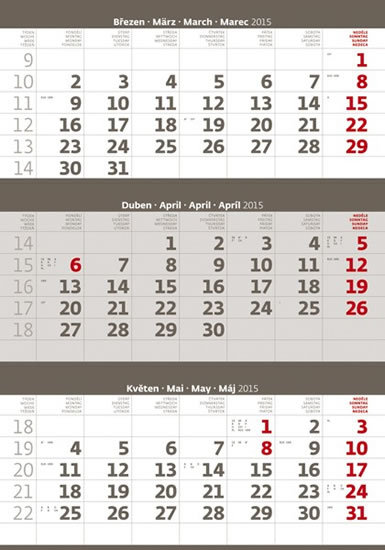 Kalendář nástěnný 2015 - Tříměsíční šedý