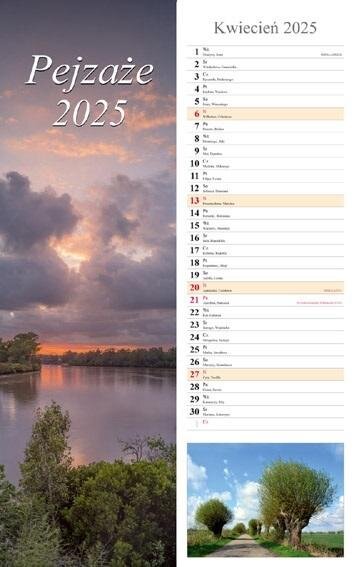 Kalendarz 2025 ścienny pasek Pejzaże (polsky)
