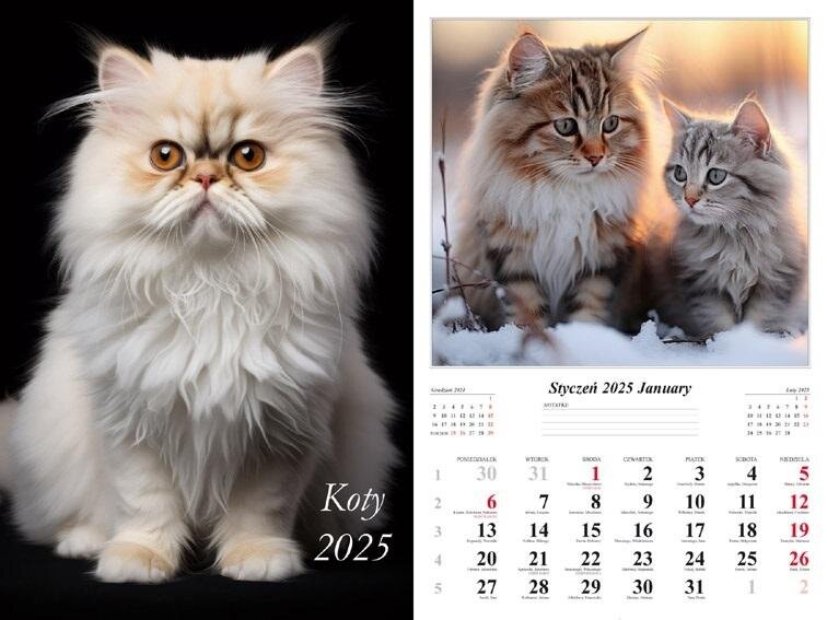 Kalendarz 2025 ścienny Koty (polsky)