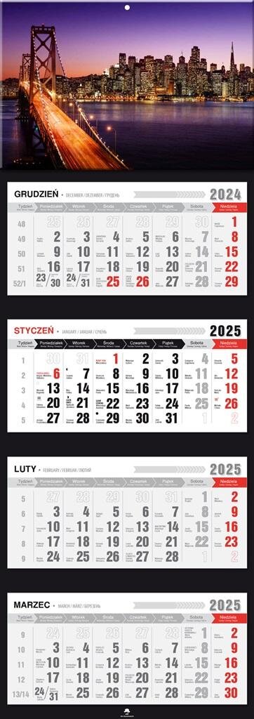 Kalendarz CZTERODZIELNY PREMIUM Z WYPUKŁA GŁÓWKĄ. Format 315/890mm. Cztery komplety klasycznych kalendariów z przesuwnym okienkiem. Główka z otworem wierconym. Dodatkowo nazwy miesiąca i dni tygodnia w języku Ukraińskim, Angielskim i Niemieckim. Kalendarium dodatkowo zawiera fazy księżyca i znaki... prečítať celé