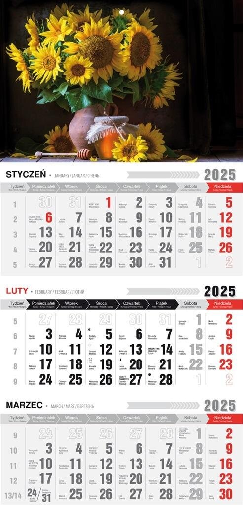 Kalendarz 2025 Trójdzielny z magnesem Słoneczniki (polsky)