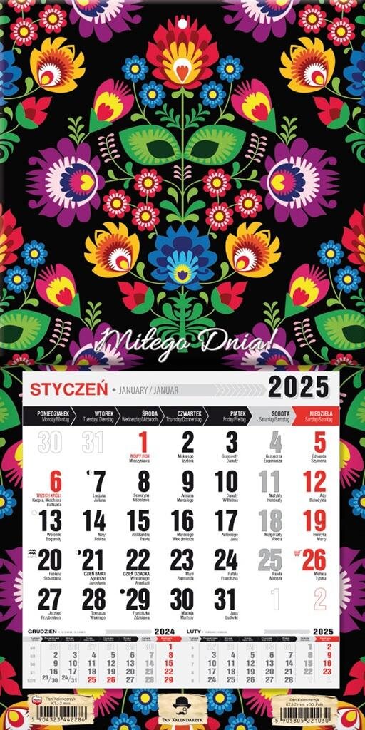 Kalendarz Trójdzielny JEDNODZIELNY MINI Z MAGNESEM. Format 230/460mm. Układ kalendariów jednodzielny z przesuwnym okienkiem. Główka z otworem wierconym oraz magnesem to doskonała propozycja do przyczepienia na lodówkę. Dodatkowo nazwy miesiąca i dni tygodnia w języku Ukraińskim, Angielskim i...