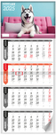 Kalendarz czterodzielny z okienkiem i wypukłą główką w dwóch różnych wzorach graficznych (pies, most). prečítať celé