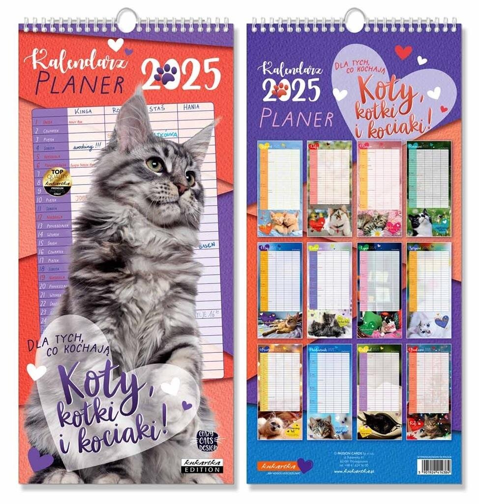 Kalendarz 2025 ścienny planer Koty (polsky)