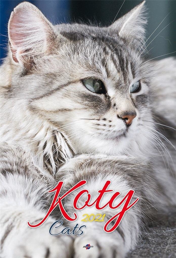 Koty 2021Duży kalendarz ścienny, drukowany na grubym papierze powlekanym.Co zawiera kalendarz?- 12 miesięcznych plansz- najpopularniejsze imieniny, popularne święta- godziny wschodu i zachodu słońca- fazy księżyca i znaki zodiaku- nazwy miesięcy i dni tygodnia po polsku, angielsku i niemiecku