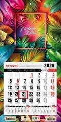 Kalendarz 2026 Trójdzielny JEDNODZIELNY MINI Z MAGNESEM. Format 230/460mm. Układ kalendariów jednodzielny z przesuwnym okienkiem. Główka z otworem wierconym oraz magnesem to doskonała propozycja do przyczepienia na lodówkę. Dodatkowo nazwy miesiąca i dni tygodnia w języku Ukraińskim, Angielskim i...