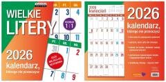 Kalendarz 2026 Wielkie litery Kukartka Kwadratowy kalendarz ścienny na rok 2026 z serii "Wielkie litery". Żadnego miesiąca nie przeoczysz - kalendarz składa się z wielkich liter. Znajduje się w nim dużo miejsca do notowania. Kalendarz po rozłożeniu ma wymiary 30x60 cm. Specyfikacja: Wielkość: 30...