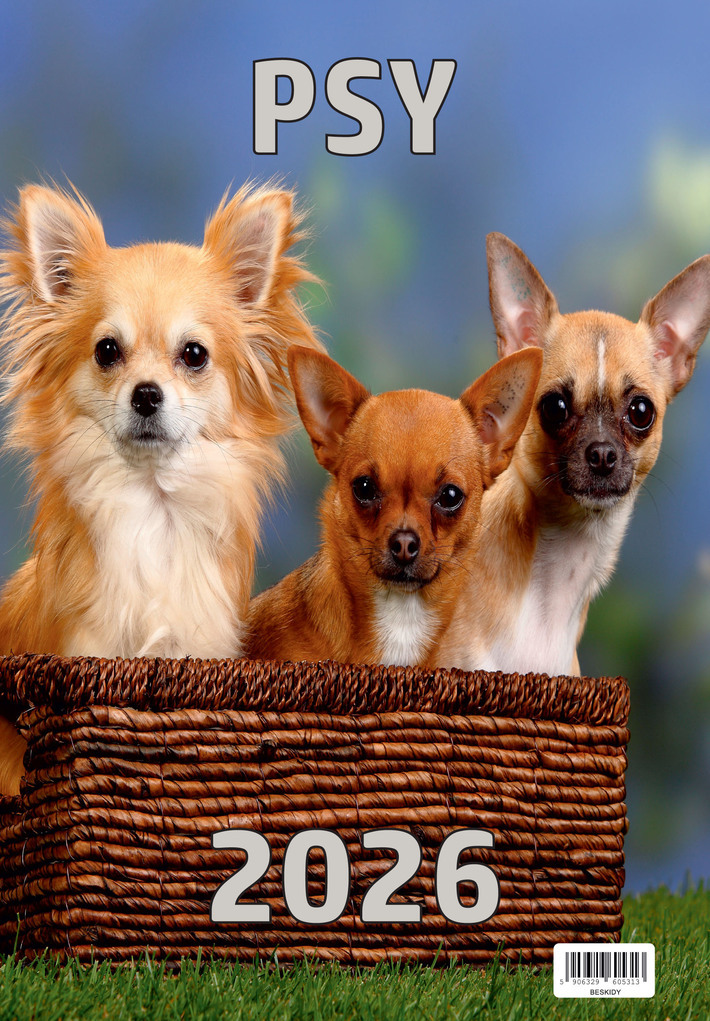 Kalendarz ścienny 2026 13-kartkowy 2026 Psy (polsky)