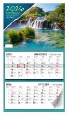 Kalendarz ścienny, dwumiesięczny z okienkiem; 12 kart. 2 wzory główek. Wymiary po rozłożeniu 310x530 mm. prečítať celé