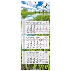 kalendarz ścienny, trójdzielny z główką płaską z zadrukiem na całych pleckach