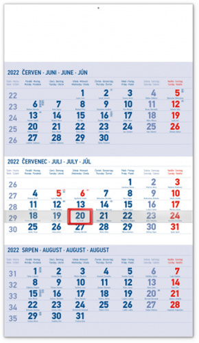 Nástěnný kalendář 3měsíční standard modrý – s českými jmény 2022 (česky)