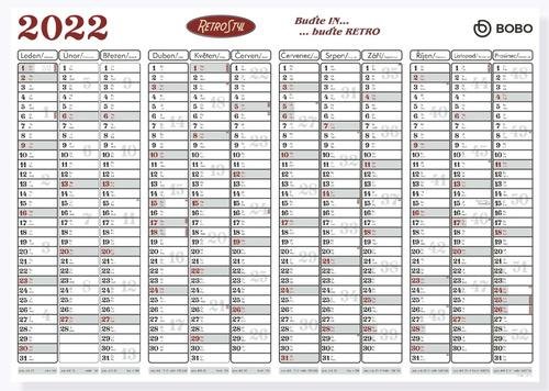 Plánovací roční mapa retro skládaná 2022 - nástěnný kalendář (česky)