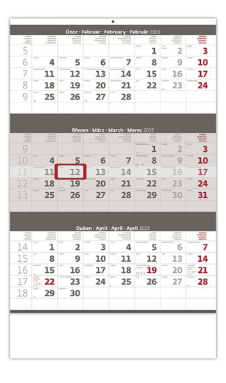 Kalendář nástěnný 2019 - Tříměsíční šedý (česky)