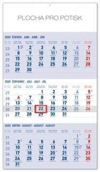 Nástěnný kalendář 3měsíční standard modrý 2020 (česky)