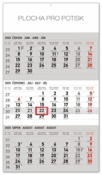 Nástěnný kalendář 3měsíční standard šedý 2020 (česky)