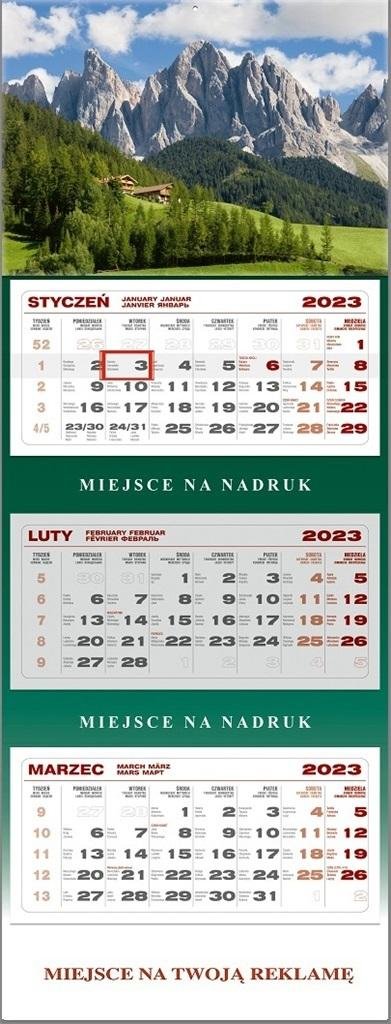 Kalendarz 2023 ścienny trójdzielny Góry (polsky)
