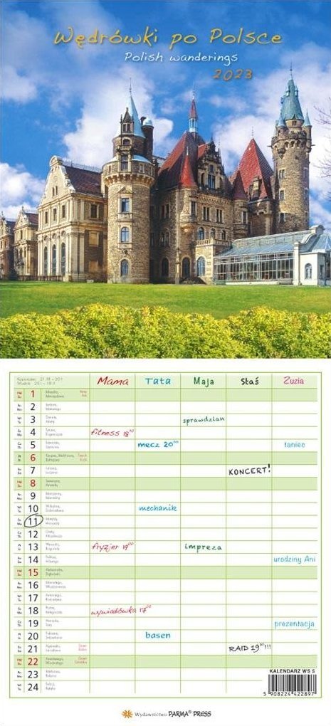 Kalendarze ścienne wąskie charakteryzują się przede wszystkim czytelnym kalendarium oraz dużą ilością miejsca na codzienne notatki. Oprawa kalendarzy umożliwia obracanie stron, bez konieczności ich zrywania.format 2/3 B3 (22 x 48 cm)13-planszowypapier: kreda 135 g/m2kalendarium polsko-angielskiez...