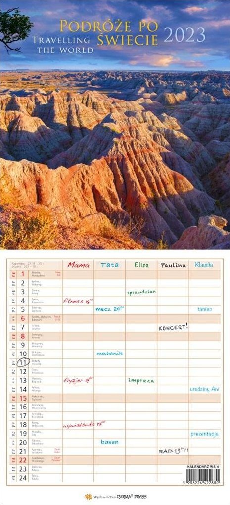 Kalendarze ścienne wąskie charakteryzują się przede wszystkim czytelnym kalendarium oraz dużą ilością miejsca na codzienne notatki. Oprawa kalendarzy umożliwia obracanie stron, bez konieczności ich zrywania.format 2/3 B3 (22 x 48 cm)13-planszowypapier: kreda 135 g/m2kalendarium polsko-angielskiez...