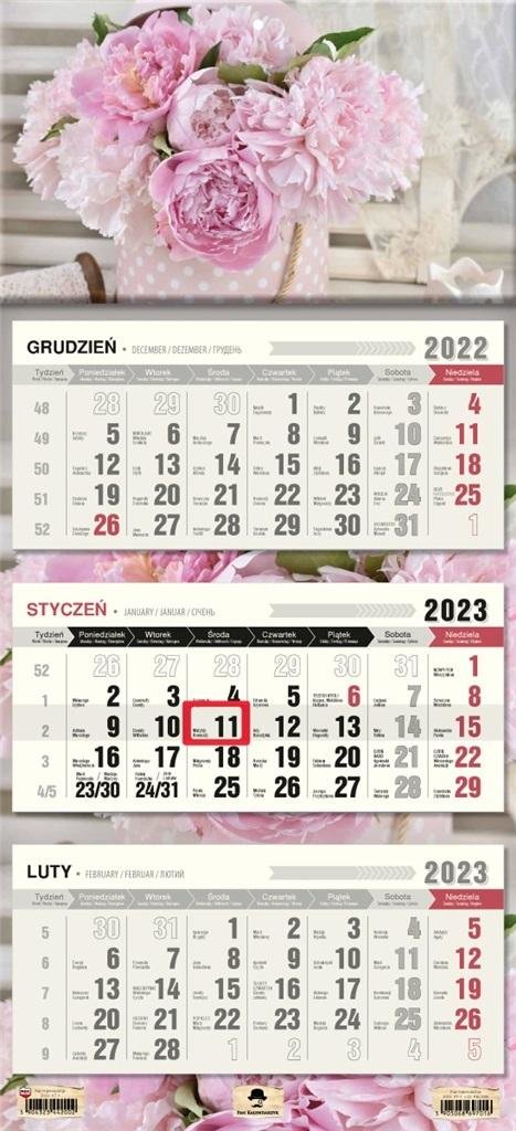 Kalendarz 2023 trójdzielny płaska główka Peonie (polsky)
