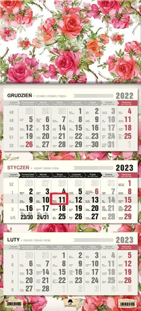 Kalendarz 2023 trójdzielny płaska główka Róże (polsky)