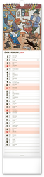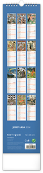 Nástěnný kalendář s ilustracemi Josefa Lady a jeho pohádkovými motivy je vyhotoven v oblíbeném úzkém formátu, který osvěží každý interiér. V kalendáři je rovnocenně zahrnuta čeština a slovenština, ilustrace doplňují česká a slovenská jména, svátky, památné dny a fáze měsíce. Každý den má prostor pro poznámky, víkendové dny jsou barevně odlišené od pracovních.